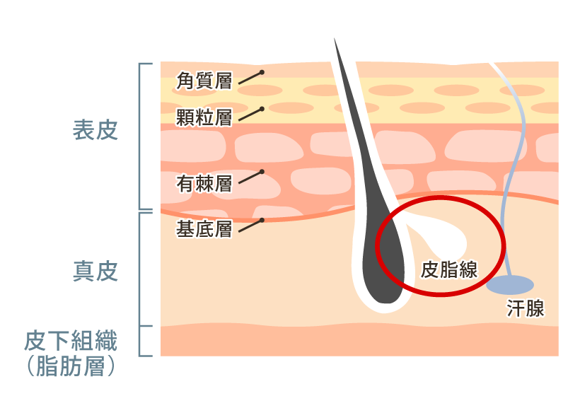 肌は3層に分かれており、表面から「表皮」、「真皮」、「皮下組織」に分かれています。