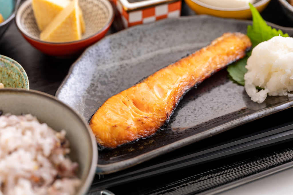 血行不良の対策についても触れていきます。何よりまずは温めることです。手っ取り早いのは入浴です。夏の間はシャワーで済ませていた方も、秋からはしっかり湯船で温まることがくすみ改善への近道といえます。入浴剤などで楽しみながらゆったりと秋の夜長を楽しむのもいいですね。血行不良の改善におすすめの入浴剤は炭酸ガス系のものです。炭酸ガスには血行を促進し、疲れやコリを取り除く効果や、体を芯から温める効果があります。また、無機塩類系の入浴剤も効果的です。発汗作用を促し新陳代謝が高まり血行を促進する効果があります。40度以下の低めのお湯に30分くらいがおすすめです。寝る前に入るとぽかぽかの状態でベッドに入れるので、安眠効果も期待できます。睡眠をしっかりとると肌の新陳代謝もよくなります。入浴中、肩にタオルをかけると保湿効果が高まります。長時間湯船につかる時間がない方の場合は、半身浴ではなく、肩までしっかりつかる全身浴がよいでしょう。効率的に身体を温めることができるのでお勧めです。血行不良に良いとされる栄養素はビタミンEです。ビタミンEは、末梢血管を広げ血流を改善する効果があります。これを豊富に含む秋の食物は鮭です。鮭にはアンチエイジング成分であるアスタキサンチン、高血圧予防に効果のあるEPA、認知症予防によいDHA、カルシウムの吸収を助けるビタミンD、貧血の予防に効果テクなビタミンB12なども含まれます。積極的に摂取したいですね。より効果的に栄養を摂り入れるために、皮ごと食べたり、油で調理して食べるのがおすすめです。