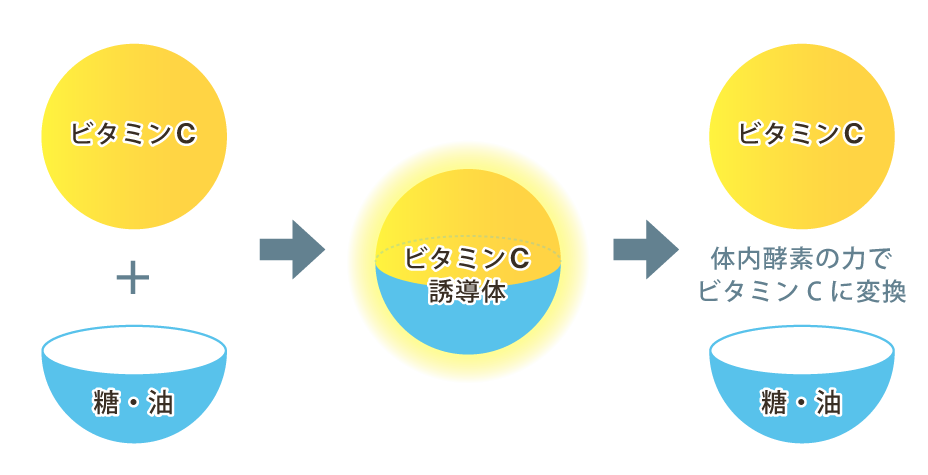 ▼ビタミンC誘導体はどのようにビタミンCに戻るのか