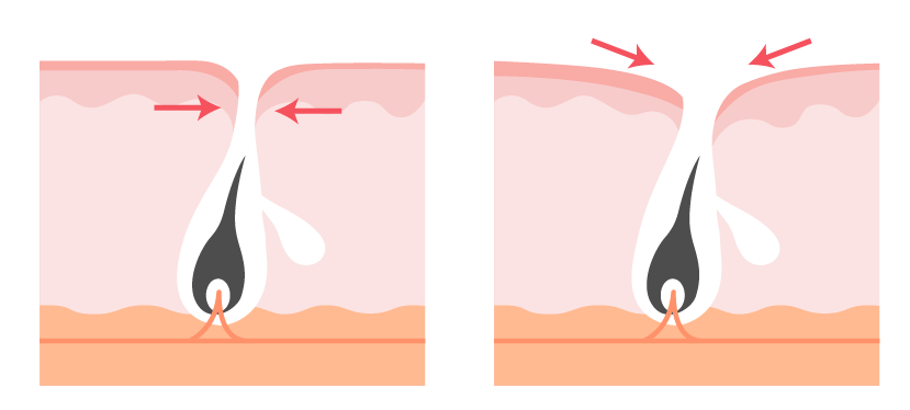 毛穴は医学的には「毛包」と呼ばれており、肌にあいた「穴」というよりは、肌が落ち込んでできた「くぼみ」というのが正解です。